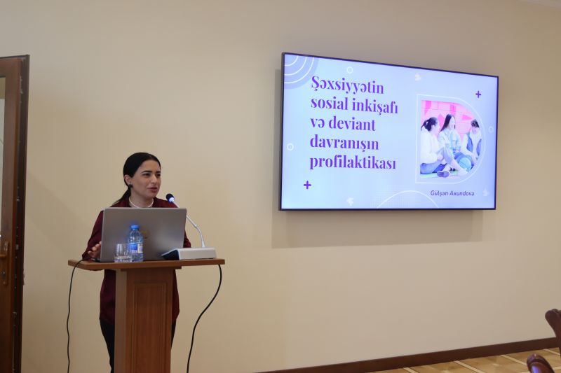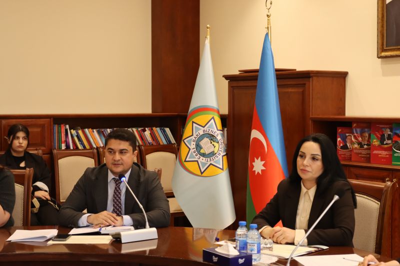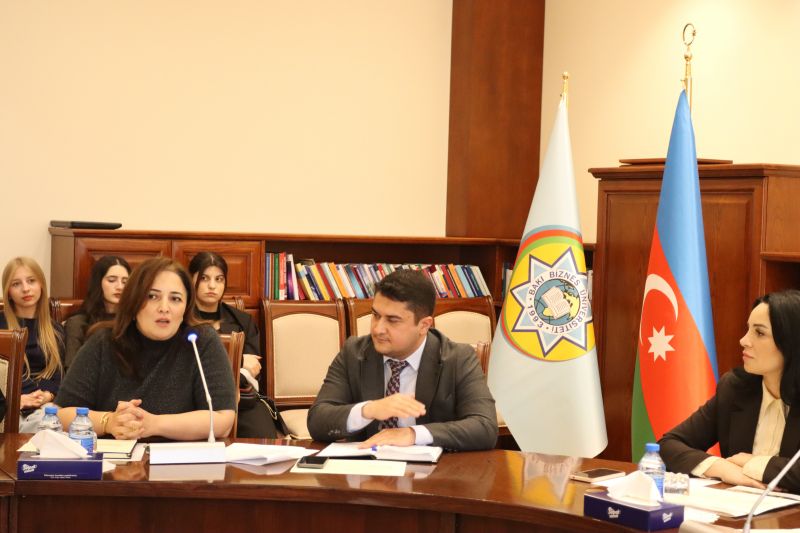 27 noyabr 2025-ci il tarixində Bakı Biznes Universitetinin “Humanitar elmlər” kafedrası və Əmək Bazarı və Sosial Müdafiə Məsələləri üzrə Milli Observatoriyanın birgə təşkilatçılığı ilə elmi seminar keçirilmişdir. Seminarın təşkilində məqsəd əmək bazarındakı aktual dəyişikliklərin elmi analizini aparmaq, sosial müdafiə sahəsində müasir yanaşmaları müzakirə etmək və ali təhsil müəssisəsi ilə müvafiq dövlət qurumu arasında elmi-praktik əməkdaşlığı gücləndirmək olmuşdur. Tədbiri giriş sözü ilə Humanitar elmlər kafedrasının müdiri, f.ü.f.d., dosent Məhsəti Cəfərova açaraq əməkdaşlığın əhəmiyyətindən, tələbələrin bu cür elmi-praktik görüşlərdə iştirakının onların peşəkar inkişafına verdiyi töhfədən bəhs etmişdir. O, əmək bazarı və sosial müdafiə sahəsində aparılan tədqiqatların humanitar elmlərlə inteqrasiyasının vacibliyini vurğulamışdır. Daha sonra “Humanitar elmlər” kafedrasının müəllimi s.ü.f.d. Tutu Eyvazova “Sosial işin təşkil olunmasında yumşaq bacarıqların rolunun təhlili” mövzusunda çıxış edərək sosial işçilərin peşəkar fəaliyyətində kommunikasiya, empatiya, komanda işi və liderlik kimi yumşaq bacarıqların əhəmiyyətini elmi əsaslarla təhlil etmişdir. Sosial Xidmətlər Agentliyinin Valideyn himayəsindən məhrum olmuş uşaqlarla iş departamentinin müdiri Şahmalıyev Cavid İmam oğlu dövlət uşaq siyasəti, alternativ qayğı formaları və həssas qruplarla iş mexanizmləri barədə məlumat vermiş, sahədə mövcud çağırışları və tətbiq olunan yeni yanaşmaları seminar iştirakçılarının diqqətinə çatdırmışdır. “Humanitar elmlər” kafedrasının müəllimi Gülşən Axundova “Şəxsiyyətin sosial inkişafı və deviant davranışın profilaktikası” mövzusunda məruzə ilə çıxış edərək gənclər arasında sosiallaşma prosesləri, risk qruplarının formalaşma səbəbləri və deviant davranışın qarşısının alınması istiqamətində profilaktik tədbirləri izah etmişdir. Seminar çərçivəsində əməkdaşlığın gələcək istiqamətləri, birgə elmi layihələrin təşkili, tələbələrin sosial müdafiə sahəsində praktiki bilik və bacarıqlarının artırılması kimi məsələlər ətrafında fikir mübadiləsi aparılmışdır. Tədbirin sonunda iştirakçılar mövzular ətrafında sual-cavab və müzakirələrdə fəal iştirak etmiş, seminarın elmi və praktiki baxımdan faydalı olduğu vurğulanmışdır.