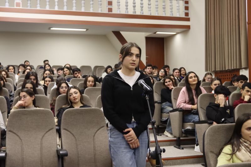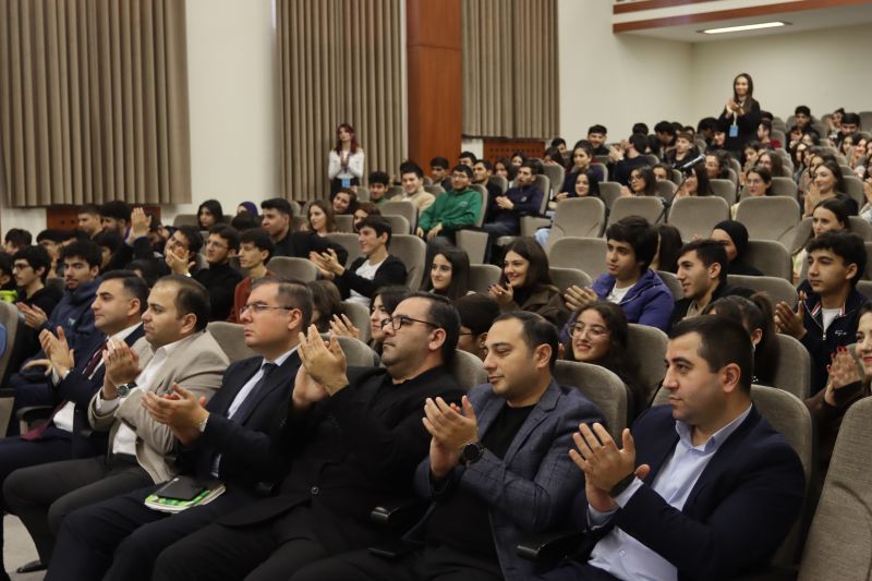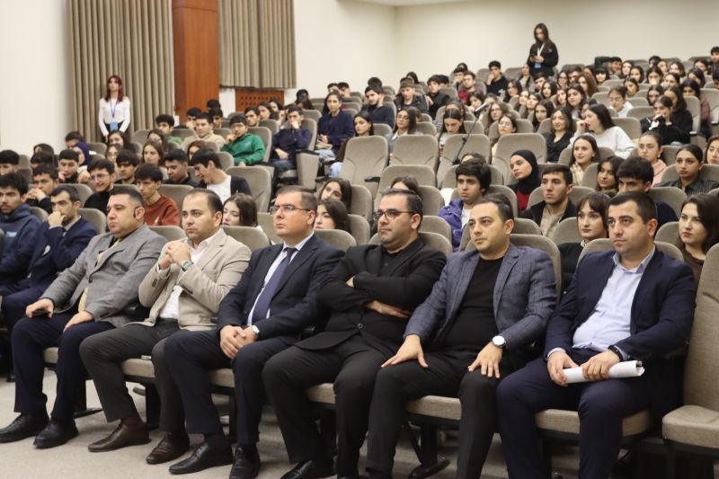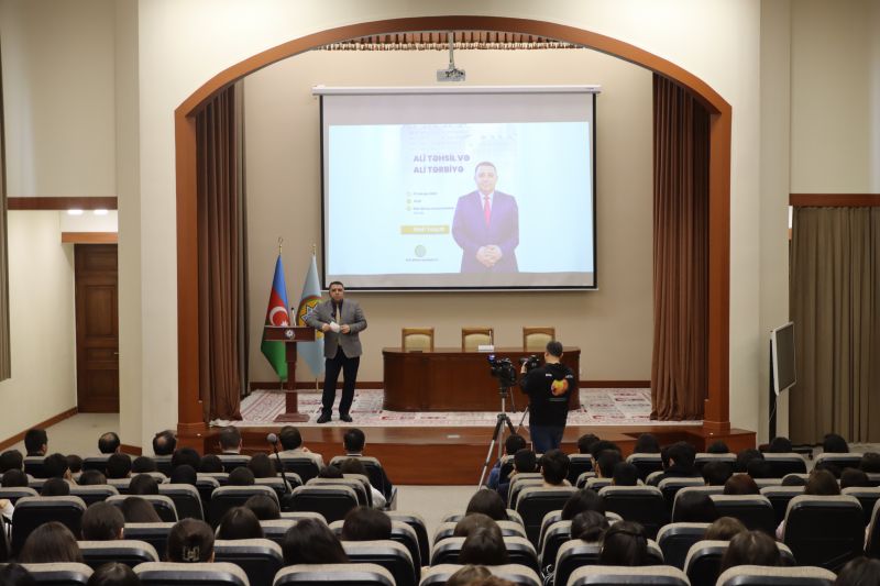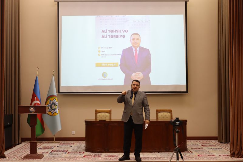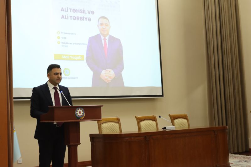 03 dekabr 2025-ci il tarixində Bakı Biznes Universitetində tanınmış fəlsəfəçi və sosioloq, fəlsəfə üzrə fəlsəfə doktoru Mail Yaqubun “Ali təhsil və ali tərbiyə” mövzusunda tələbələrlə görüşü keçirilib. Görüşdə professor-müəllim heyəti və tələbələr iştirak ediblər. Tədbirin açılışını Universitetin Təlim-tərbiyə işləri üzrə prorektoru Cavidan Heydarov edib. O, belə görüşlərin gənclərin dünyagörüşünün formalaşmasında, intellektual potensialının və mənəvi-estetik dəyərlərinin inkişafında mühüm əhəmiyyət daşıdığını qeyd edib. Daha sonra o, sözü fəlsəfəçi Mail Yaquba təqdim edib. Mail Yaqub çıxışında ali təhsilin təkcə elmi biliklərin mənimsənilməsi prosesi deyil, həm də şəxsiyyətin formalaşması və cəmiyyətə faydalı fərdlərin yetişdirilməsi mərhələsi olduğunu vurğulayıb. O, ali təhsil anlayışının tərbiyə anlayışı ilə vəhdətdə dəyərləndirilməsinin vacibliyindən danışıb, tələbələrə düşünən, məsuliyyətli və milli kimliyinə sadiq vətəndaş olmağın yolları barədə dərin fəlsəfi fikirlər çatdırıb. O vurğulayıb ki, “ali təhsil” anlayışı “ali tərbiyə” ilə tamamlanmadıqda, təhsil prosesi natamam qalır. M.Yaqub çıxışında ali tərbiyənin əsasını təşkil edən bir neçə istiqamətə, o cümlədən əxlaqi, mədəni, intellektual və emosional tərbiyəyə xüsusi diqqət yetirib və qeyd edilən mühüm mözvularda real hadisələri şərh edib. Tədbir interaktiv sual-cavab sessiyası ilə davam edib. Tələbələr ali təhsilin dəyərləri, gənclərin sosial məsuliyyəti, təhsil və tərbiyənin qarşılıqlı əlaqəsi mövzularında müzakirədə fəal şəkildə iştirak ediblər.