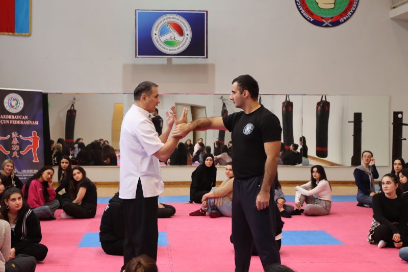 11 dekabr 2025-ci il tarixində Bakı Biznes Universitetində “Konstitusiya və Suverenlik İli” çərçivəsində tələbə qızlar üçün Vinq Çun döyüş sənəti üzrə özünümüdafiə üsullarına dair seminar təşkil edilmişdir. Seminara Azərbaycan Çin Döyüş Növləri Assosiasiyasının prezidenti və Vinq Çun Federasiyasının prezidenti Asif Sayadov rəhbərlik etmişdir. Tədbirin əsas məqsədi qadınların özünümüdafiə bacarıqlarının inkişaf etdirilməsi, fiziki hazırlığın gücləndirilməsi və sağlam həyat tərzinin təşviq edilməsi olmuşdur. Asif Sayadov öncəliklə iştirakçılara Vinq Çun döyüş sənətinin yaranma tarixi, fəlsəfəsi, texniki xüsusiyyətləri və praktiki özünümüdafiə tətbiqləri barədə geniş məlumat vermişdir. Seminar zamanı tələbə qızlar üçün müxtəlif hərəkətlər nümayiş etdirilmiş, təhlükəsiz özünümüdafiə üsulları izah edilmiş və praktiki məşğələlər keçirilmişdir. İştirakçılar seminarda böyük maraqla iştirak etmiş, Vinq Çun sənətinin gündəlik həyatda tətbiq oluna biləcək faydaları barədə suallarına ətraflı cavab almışlar. Seminar iştirakçıları qeyd edib ki, bu kimi tədbirlər universitetdə tələbələrin fiziki və sosial bacarıqlarının inkişafı, həmçinin onların təhlükəsizlik və özünümüdafiə biliklərinin artırılması istiqamətində mühüm əhəmiyyət daşıyır.